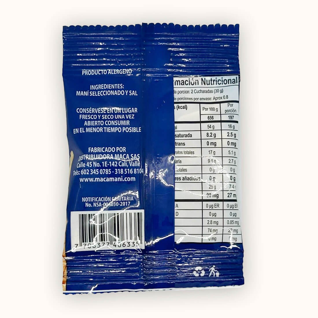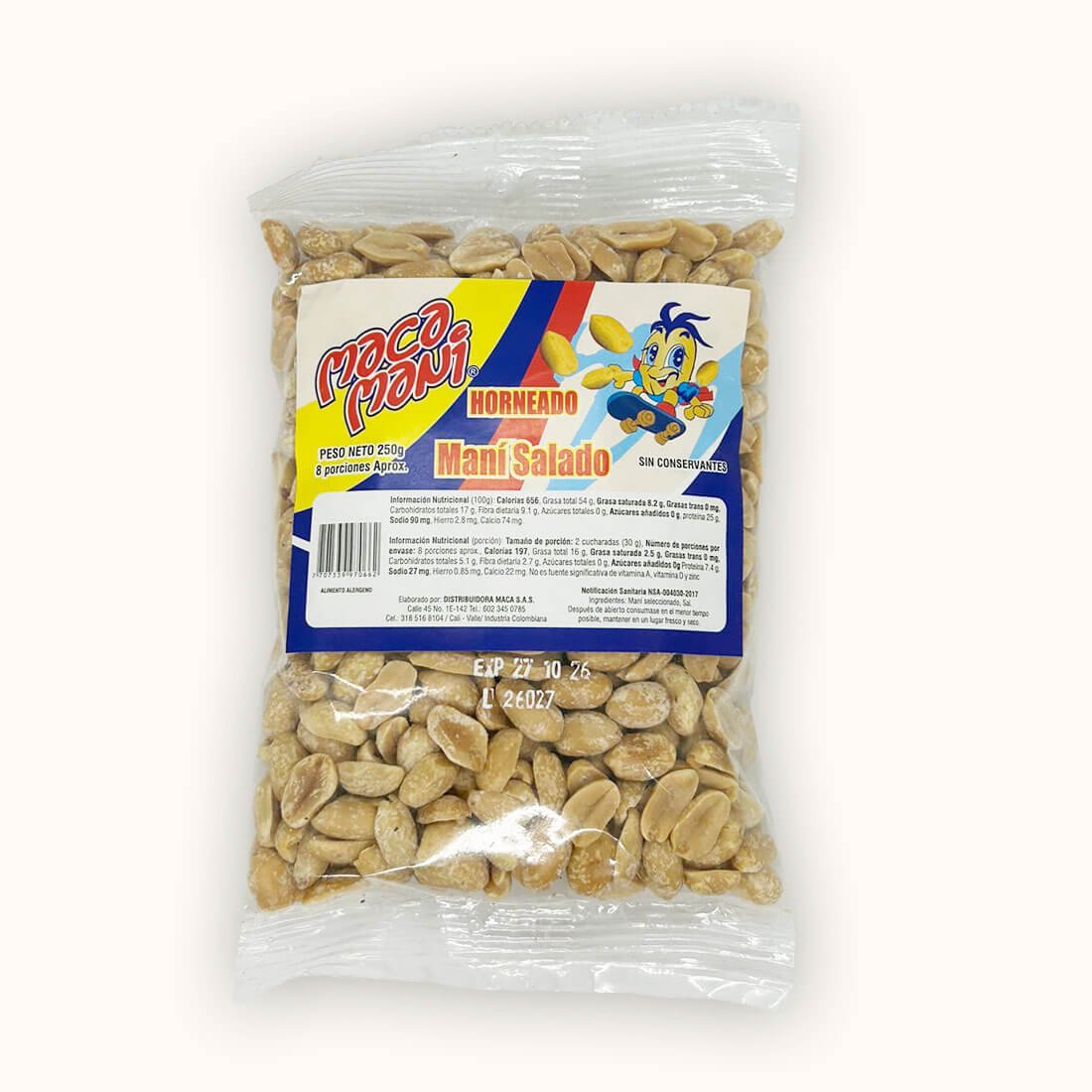 Maní horneado, sin conservantes añadidos, ideal para consumo diario y distribución comercial.