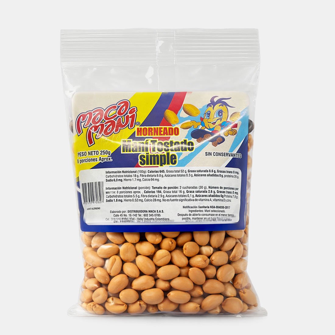 Crujiente maní tostado resalta su sabor y lo convierte en un snack refrescante y delicioso.